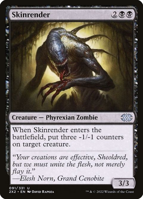 Double Masters 2022 Skinrender Creature — Phyrexian Zombie When this creature enters, put three -1/-1 counters on target creature. "Your... Read more