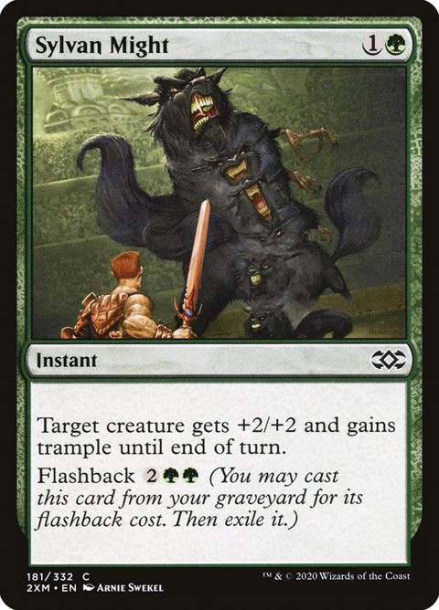 Double Masters Sylvan Might Instant Target creature gets +2/+2 and gains trample until end of turn. Flashback (You may cast... Read more