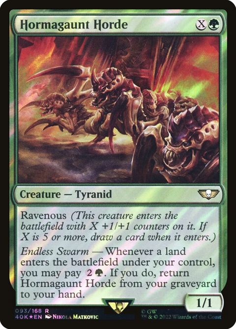 Warhammer 40,000 Commander Hormagaunt Horde Creature — Tyranid Ravenous (This creature enters with X +1/+1 counters on it. If X... Read more