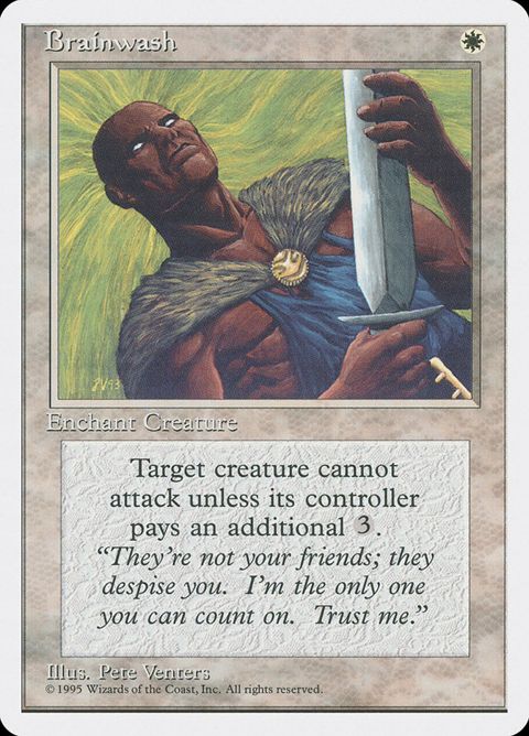 Fourth Edition Brainwash Enchantment — Aura Enchant creature Enchanted creature can't attack unless its controller pays . "They're not your... Read more