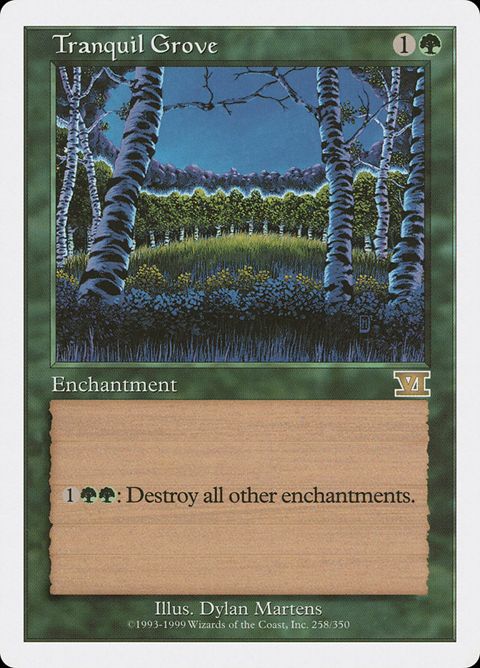 Classic Sixth Edition Tranquil Grove Enchantment : Destroy all other enchantments. Illustrated by Dylan Martens All Magic: The Gathering (MTG)... Read more