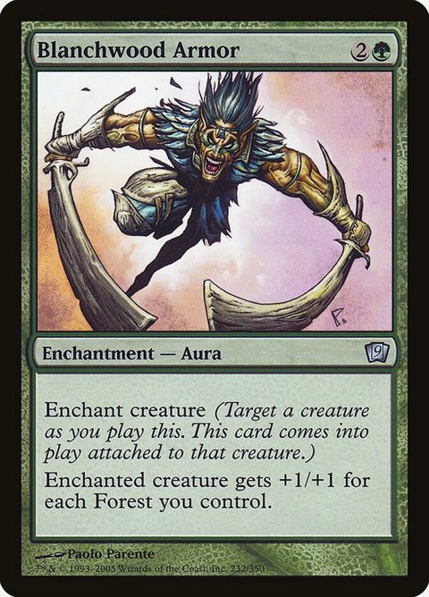 Ninth Edition Blanchwood Armor Enchantment — Aura Enchant creature Enchanted creature gets +1/+1 for each Forest you control. Illustrated by... Read more