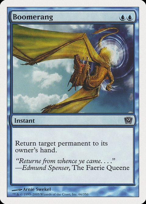Ninth Edition Boomerang Instant Return target permanent to its owner's hand. "Returne from whence ye came. . . ." —Edmund... Read more
