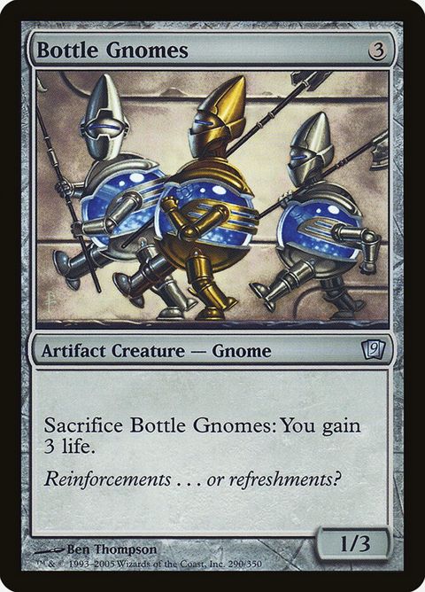 Ninth Edition Bottle Gnomes Artifact Creature — Gnome Sacrifice this creature: You gain 3 life. Reinforcements . . . or... Read more