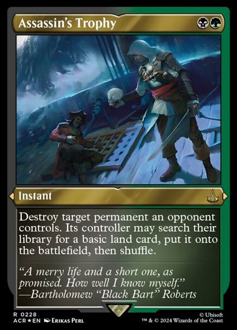 Assassin's Creed Assassin's Trophy Instant Destroy target permanent an opponent controls. Its controller may search their library for a basic... Read more