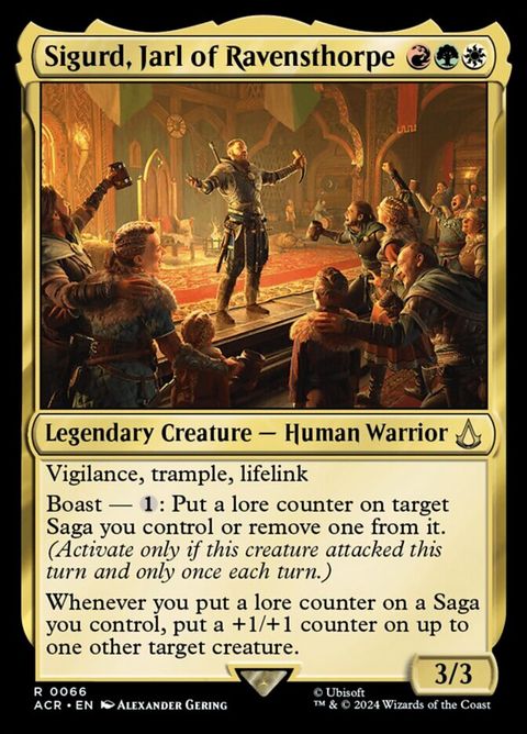 Assassin's Creed Sigurd, Jarl of Ravensthorpe Legendary Creature — Human Warrior Vigilance, trample, lifelink Boast — : Put a lore... Read more