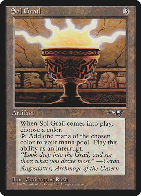 Alliances Sol Grail Artifact As this artifact enters, choose a color. : Add one mana of the chosen color. "Look... Read more