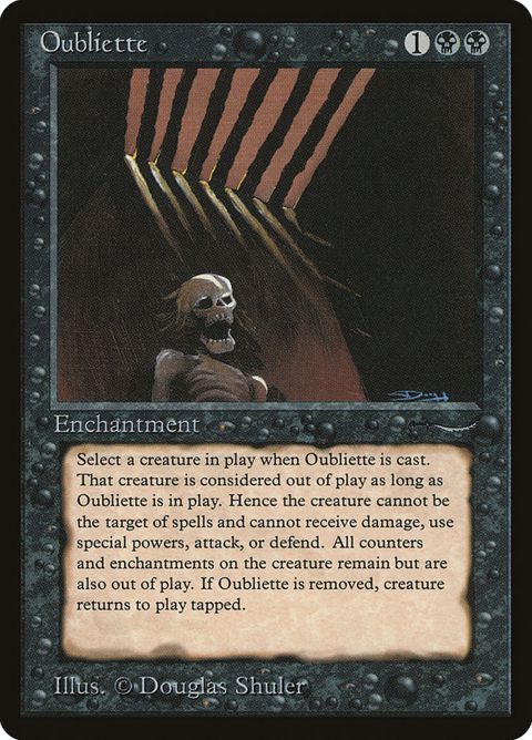 Arabian Nights Oubliette Enchantment When this enchantment enters, target creature phases out until this enchantment leaves the battlefield. Tap that... Read more
