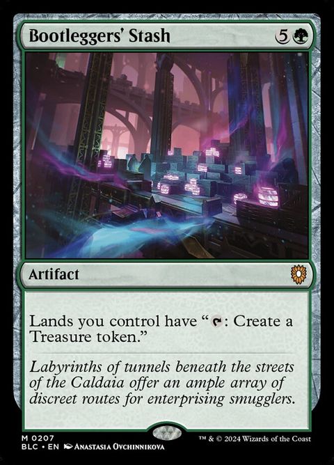 Bloomburrow Commander Bootleggers' Stash Artifact Lands you control have ": Create a Treasure token." Labyrinths of tunnels beneath the streets... Read more