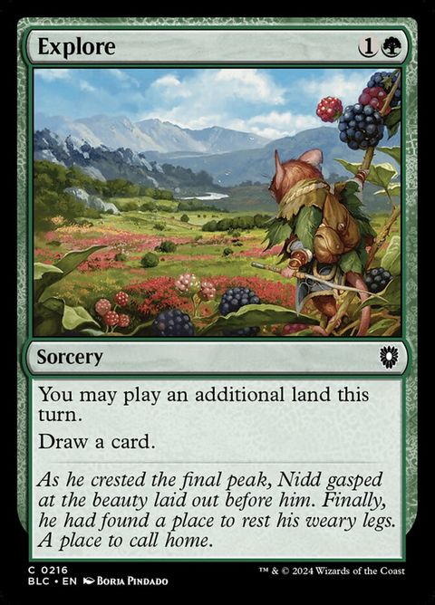 Bloomburrow Commander Explore Sorcery You may play an additional land this turn. Draw a card. As he crested the final... Read more