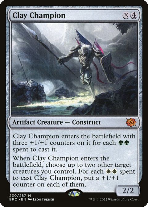 The Brothers' War Clay Champion Artifact Creature — Construct This creature enters with three +1/+1 counters on it for each... Read more