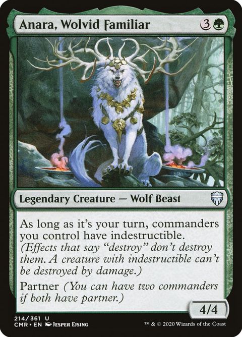 Commander Legends Anara, Wolvid Familiar Legendary Creature — Wolf Beast During your turn, commanders you control have indestructible. (Effects that... Read more