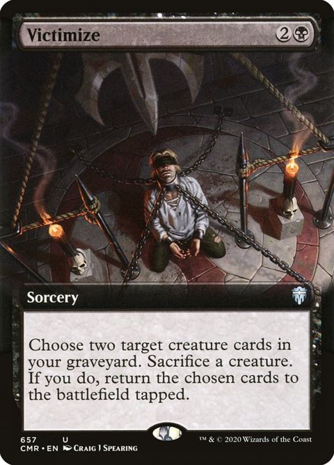 Commander Legends Victimize Sorcery Choose two target creature cards in your graveyard. Sacrifice a creature. If you do, return the... Read more
