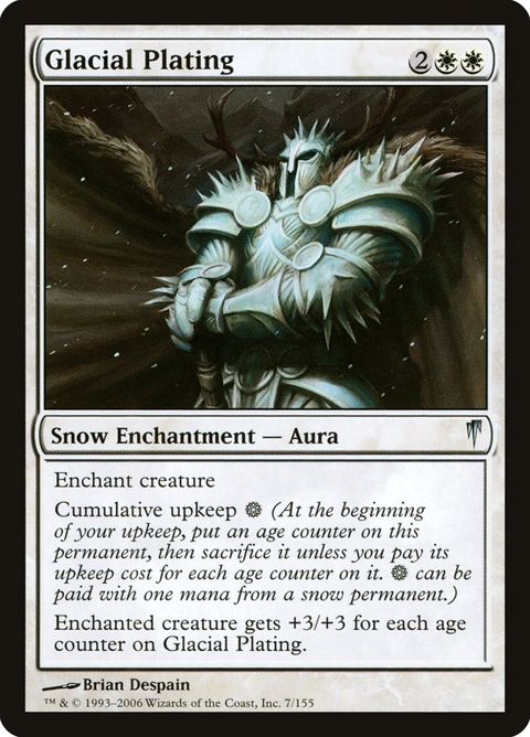 Coldsnap Glacial Plating Snow Enchantment — Aura Enchant creature Cumulative upkeep (At the beginning of your upkeep, put an age... Read more
