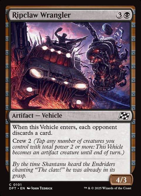 Aetherdrift Ripclaw Wrangler Artifact — Vehicle When this Vehicle enters, each opponent discards a card. Crew 2 (Tap any number... Read more