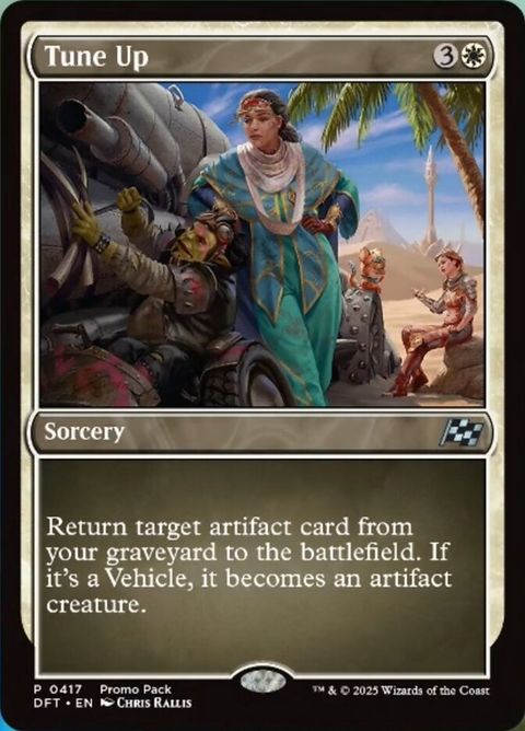 Aetherdrift Tune Up Sorcery Return target artifact card from your graveyard to the battlefield. If it's a Vehicle, it becomes... Read more