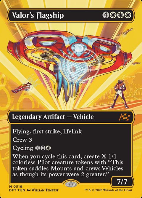 Aetherdrift Valor's Flagship Legendary Artifact — Vehicle Flying, first strike, lifelink Crew 3 Cycling (, Discard this card: Draw a... Read more
