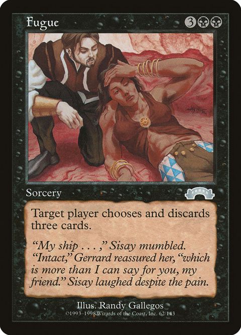 Exodus Fugue Sorcery Target player discards three cards. "My ship . . . ," Sisay mumbled. "Intact," Gerrard reassured her,... Read more