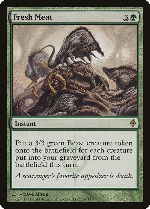 New Phyrexia Fresh Meat Instant Create a 3/3 green Beast creature token for each creature put into your graveyard from... Read more