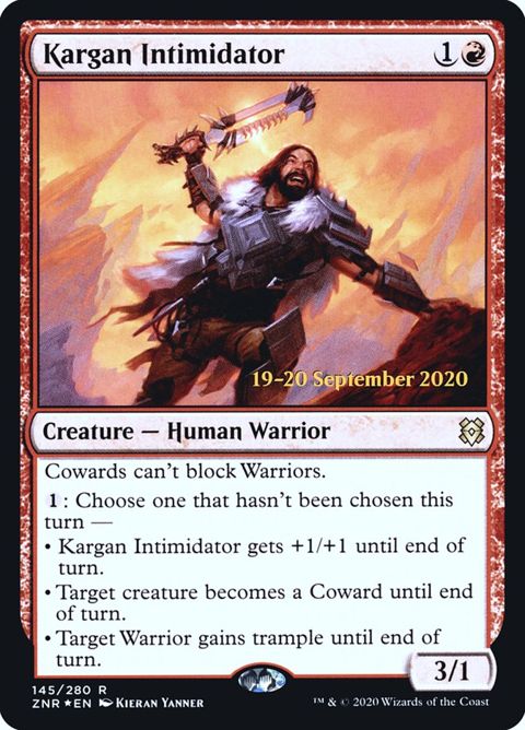 Zendikar Rising Promos Kargan Intimidator Creature — Human Warrior Cowards can't block Warriors. : Choose one that hasn't been chosen... Read more