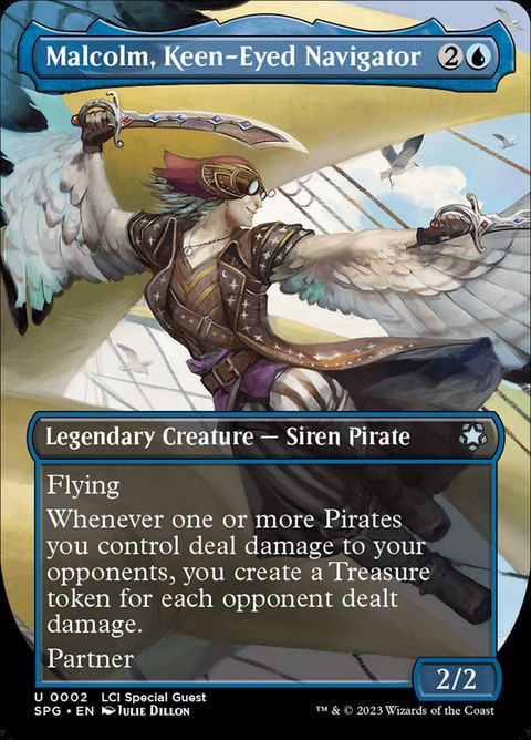 Special Guests Malcolm, Keen-Eyed Navigator Legendary Creature — Siren Pirate Flying Whenever one or more Pirates you control deal damage... Read more