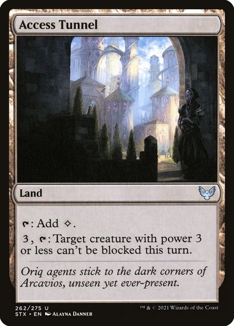 Strixhaven: School of Mages Access Tunnel Land : Add . , : Target creature with power 3 or less can't... Read more