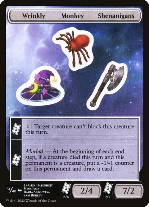 Unfinity Sticker Sheets Wrinkly Monkey Shenanigans Stickers — : Target creature can't block this creature this turn. — Morbid —... Read more