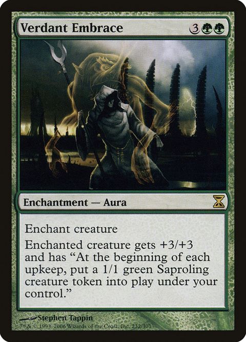 Time Spiral Verdant Embrace Enchantment — Aura Enchant creature Enchanted creature gets +3/+3 and has "At the beginning of each... Read more