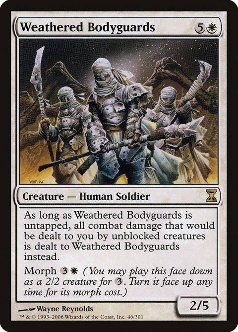 Time Spiral Weathered Bodyguards Creature — Human Soldier As long as this creature is untapped, all combat damage that would... Read more