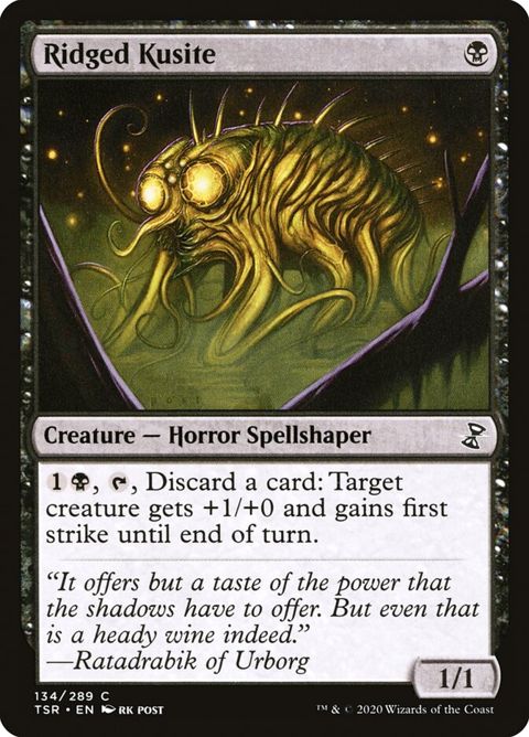 Time Spiral Remastered Ridged Kusite Creature — Horror Spellshaper , , Discard a card: Target creature gets +1/+0 and gains... Read more