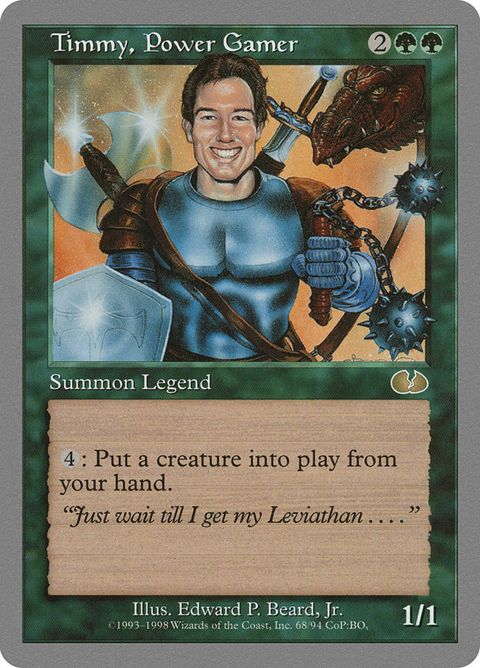 Unglued Timmy, Power Gamer Legendary Creature — Human Gamer : You may put a creature card from your hand onto... Read more