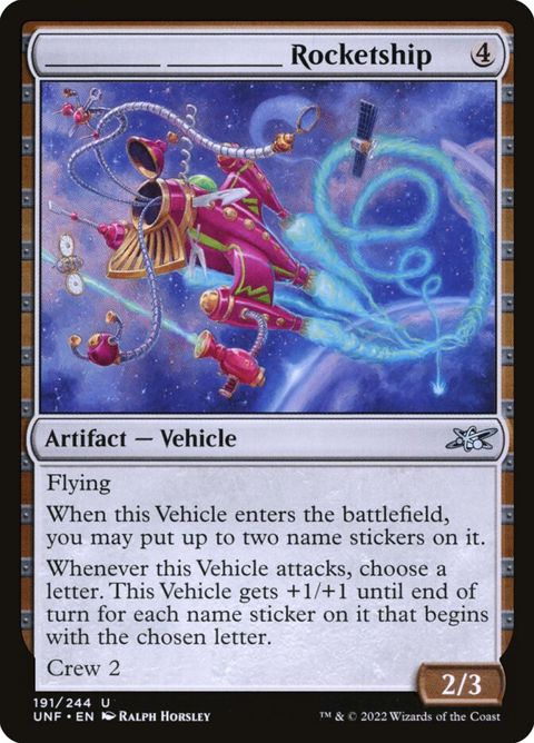 Unfinity _____ _____ Rocketship Artifact — Vehicle Flying When this Vehicle enters, you may put up to two name stickers... Read more