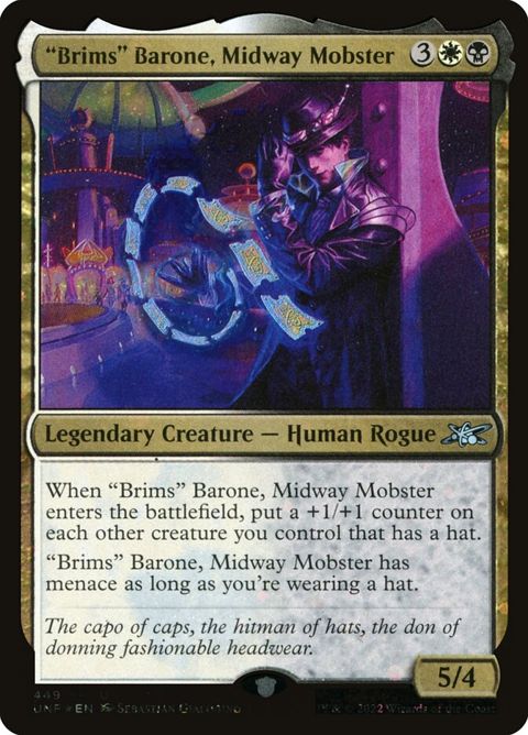 Unfinity "Brims" Barone, Midway Mobster Legendary Creature — Human Rogue When "Brims" Barone, Midway Mobster enters, put a +1/+1 counter... Read more