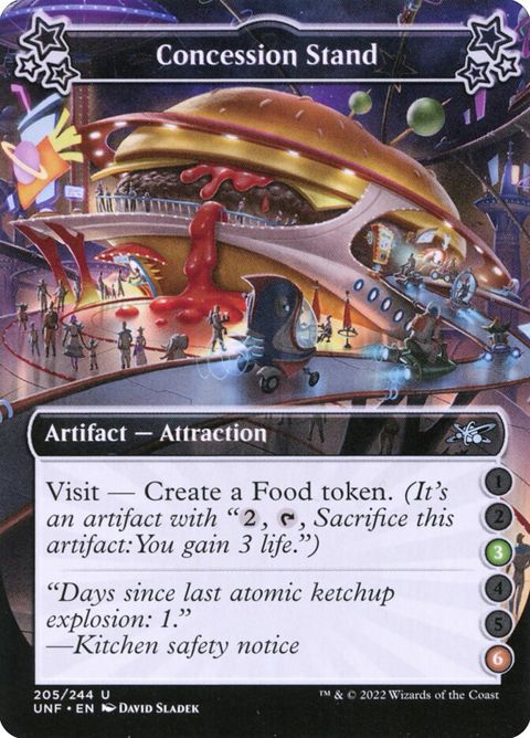 Unfinity Concession Stand Artifact — Attraction Visit — Create a Food token. (It's an artifact with ", , Sacrifice this... Read more