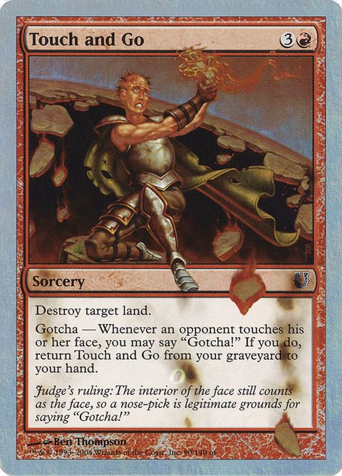 Unhinged Touch and Go Sorcery Destroy target land. Gotcha — If an opponent touches their face, you may say "Gotcha!"... Read more