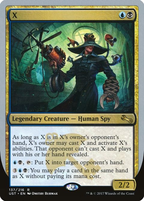 Unstable X Legendary Creature — Human Spy As long as X is in X's owner's opponent's hand, X's owner may... Read more