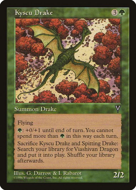 Visions Kyscu Drake Creature — Drake Flying : This creature gets +0/+1 until end of turn. Activate only once each... Read more