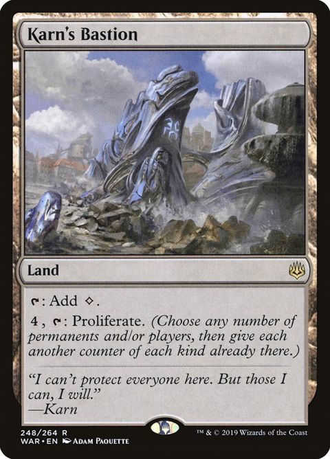 War of the Spark Karn's Bastion Land : Add . , : Proliferate. (Choose any number of permanents and/or players,... Read more