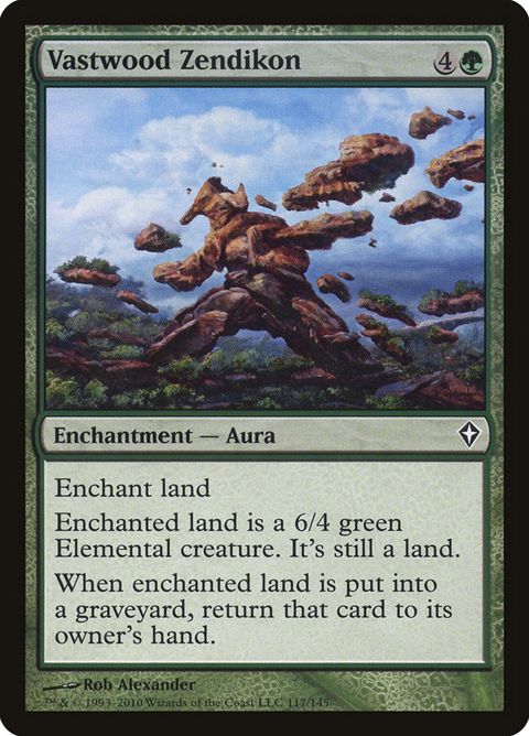 Worldwake Vastwood Zendikon Enchantment — Aura Enchant land Enchanted land is a 6/4 green Elemental creature. It's still a land.... Read more