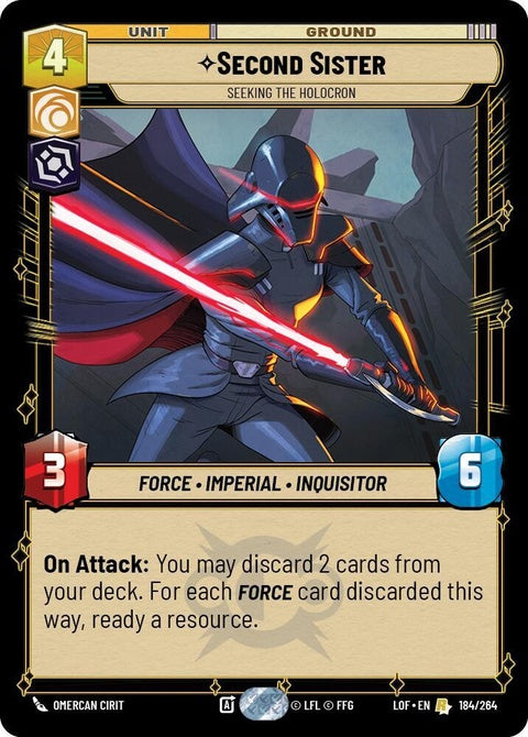 Legends of the Force Second Sister Seeking the Holocron Force;Imperial;Inquisitor On Attack: You may discard 2 cards from your deck.... Read more